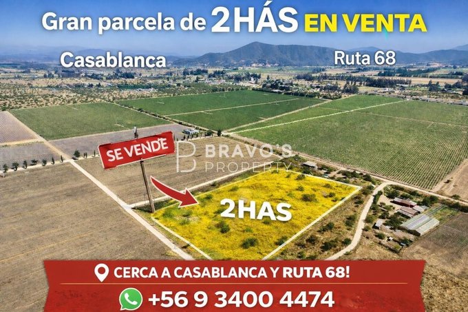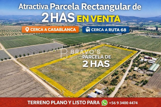 Ubicada en el sector Nuevo Mundo, esta hermosa parcela agrícola de 20.000 m2 es una oportunidad única para aquellos que buscan un lugar de descanso y tranquilidad en un entorno natural privilegiado. Rodeada de hermosas plantaciones de viñas viníferas, como Indómita y Viña Mar, ofrece vistas inigualables a las plantaciones vitivinícolas.