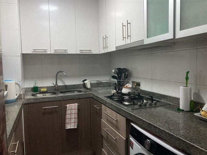 Cocina equipada con horno, microondas, encimera y campana