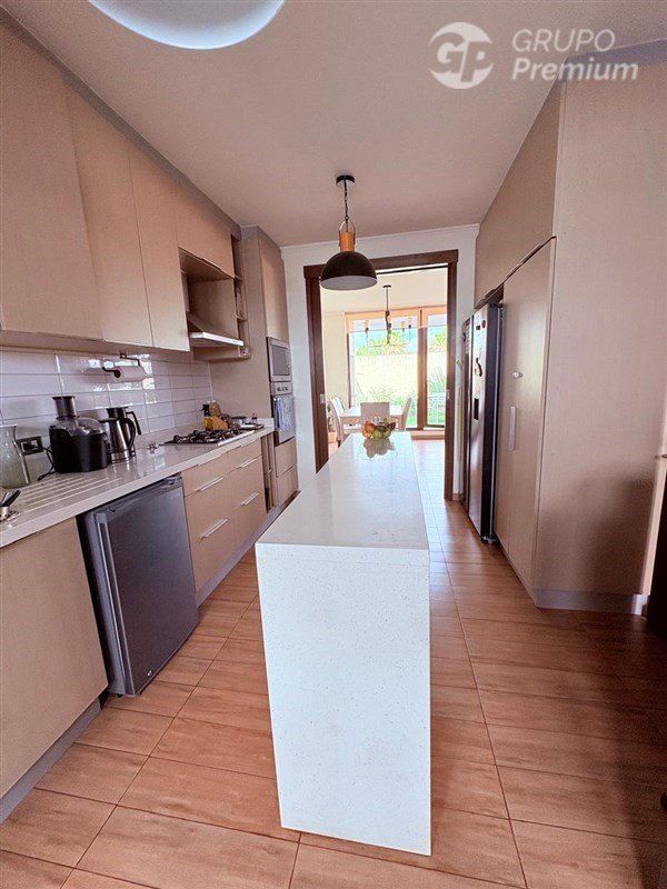 Cocina moderna full equipada, con isla central tipo showroom