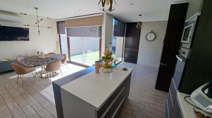 Gran cocina con comedor de diario y espacios amplios.