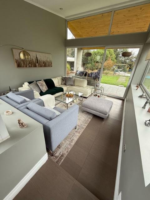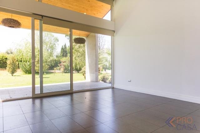 Moderna Casa de 1 piso y doble altura en Condominio ubicado en el centro de chicureo, excelente ubicación a pasos de todos los servicios de la zona. Consta de 280 metros construidos en 5.049 metros de terreno Distribucion: Hall de acceso, living con salida a terraza y jardin, cocina estilo americana con mesa tipo isla, incorporada al comedor, loggia, sala de lavado, dormitorio de servicio. Sector dormitorios: Sala de estar, amplio dormitorio en suite con salida a jardin, walk in closet, baño en suite, 2 dormitorios, 1 baño. Amplio terreno con piscina, quincho, bodega tipo invernadero, juegos para niños, estacionamientos Código interno Procasa: 67860