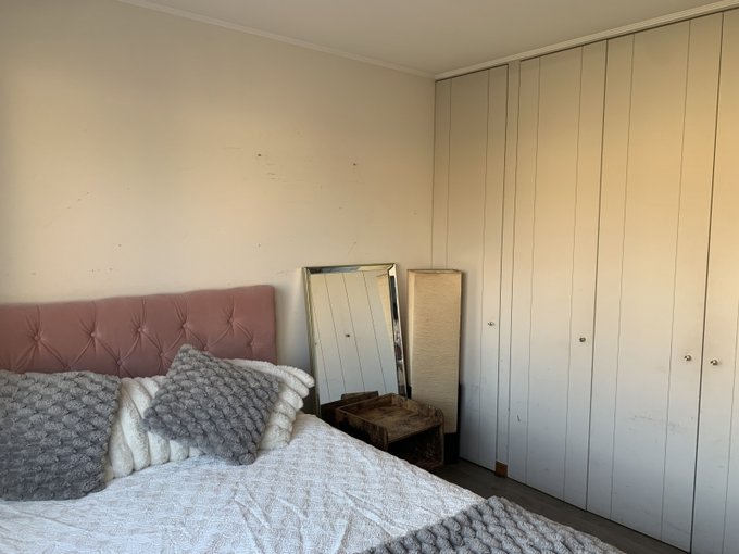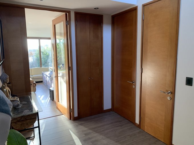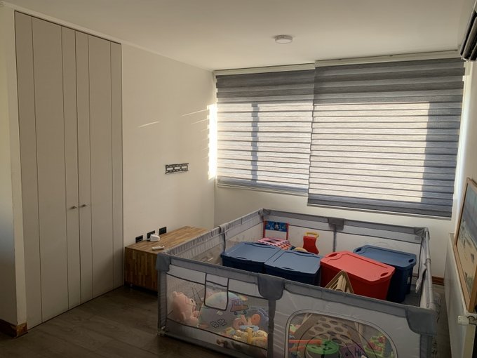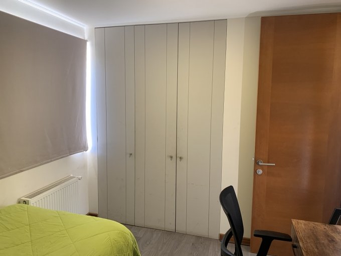Amplia e iluminada sala de estar familiar con closet. 2 dormitorios de igual dimensión que comparten un baño. Cada habitación tiene su propio closet. Piso flotante.
