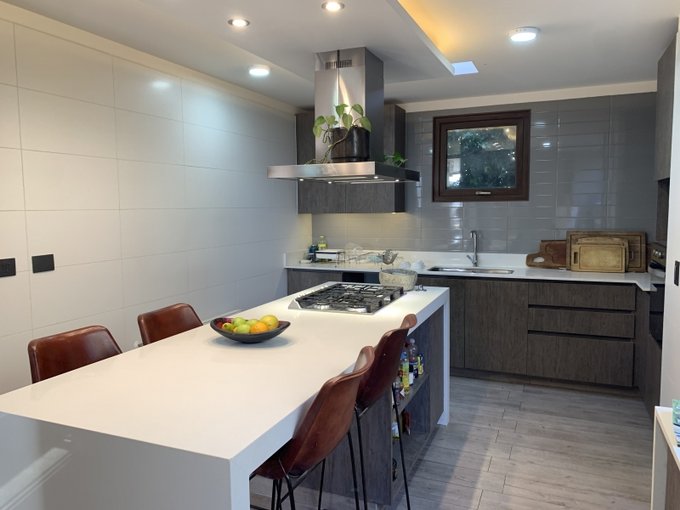 -Amplia cocina con isla en silestone.