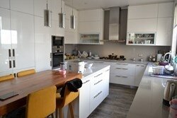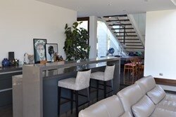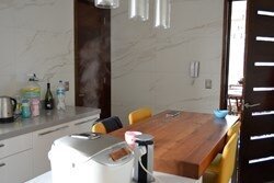 Cocina totalmente equipada, comedor isla, cubiertas de primera calidad, encimera a gas campana, horno eléctrico empotrado.