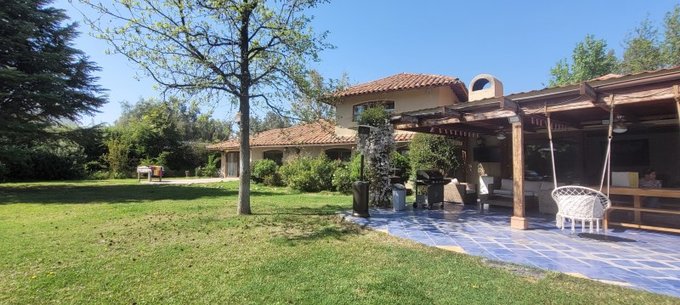 Descubre esta magnífica propiedad en venta ubicada en la prestigiosa comuna de Colina, específicamente en Castaños de Chicureo. Con un precio pactado de 16,700 U.F., esta casa ofrece una experiencia única con 380 m construidos sobre un extenso terreno de 5,000 m, jardines ornamentados , arboles frutales y decorativos .