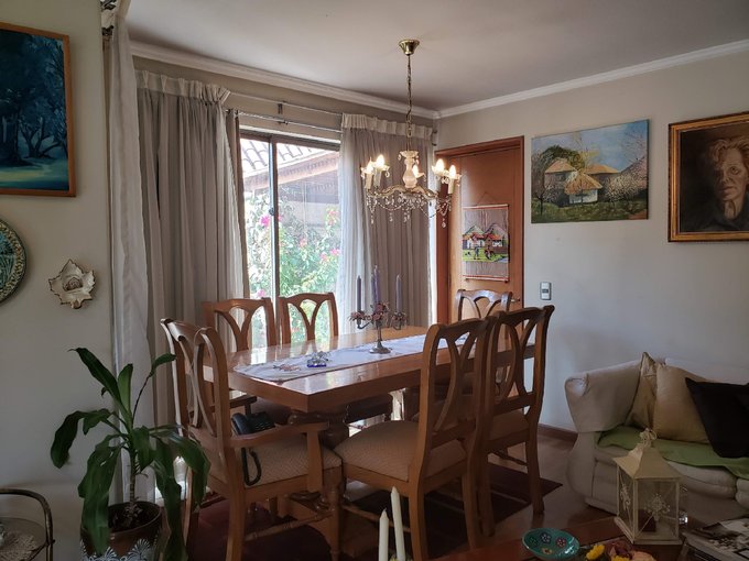 Hermosa casa de dos pisos con piscina en un condominio cerrado cerca de una autopista. En el primer piso, la casa cuenta con un dormitorio principal, un escritorio, una sala de estar y comedor, una cocina con logia y una pieza de servicio. En el segundo piso, hay un escritorio adicional, dos dormitorios y un estar que también puede ser utilizado como una oficina en casa. Además, la casa cuenta con una gran piscina y un amplio jardín.