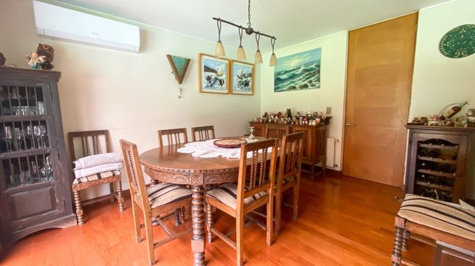 Pisos flotantes y porcelanatos, cocina ampliada con cubierta de granito, ventanas con termopanel, calefacción central por radiadores. Aire Acondicionado en escritorio, sala de estar, comedor y dormitorio principal.