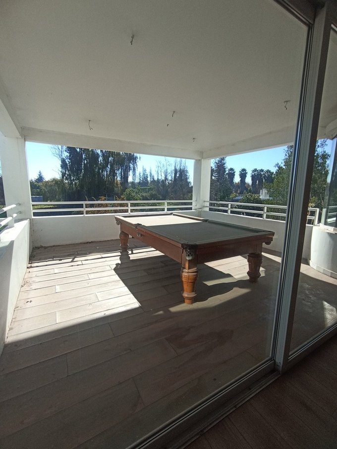 La propiedad ofrece una piscina, quincho, sauna, sala de juegos y cancha de fútbol. Los interiores son espaciosos y la casa posee calefacción central. Cuenta con terraza, gimnasio, jardín y portón automático. Hay conserjería y diez estacionamientos disponibles, así como cinco bodegas. Los gastos comunes ascienden a 240.000 CLP.