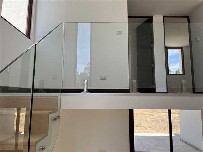 - Escalera solida con madera y ventanal doble altura.