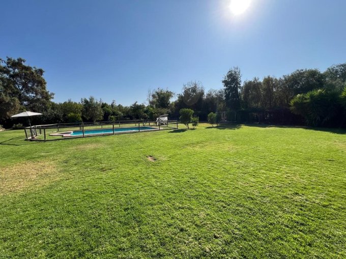 Jardín formado con árboles frutales y riego automático, Piscina y bodega.