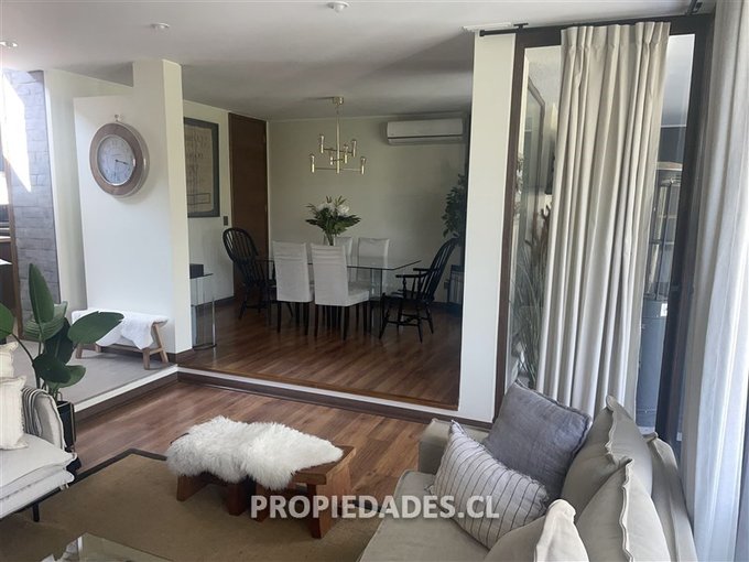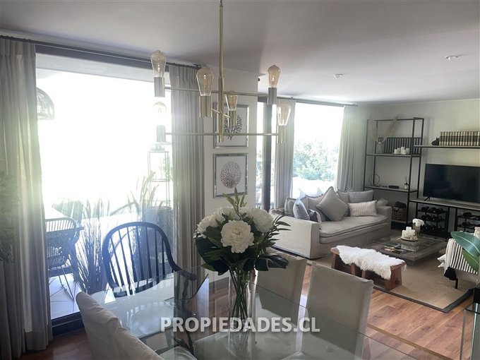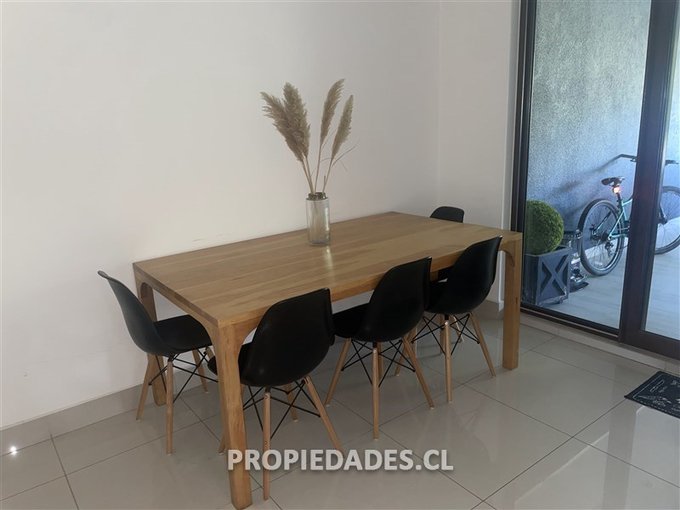 Hall de entrada con acceso a amplio living y comedor independiente, ambos con salida a patio y cocina tradicional de gran tamaño, con isla para comedor de diario o mesón, despensa, muebles y encimera, adicionalmente se incorporó el espacio considerado para la pieza de servicio dejando el baño de este dormitorio funcional, por la cocina se puede acceder a la loggia de 7 Mts2 y sector de guardado.