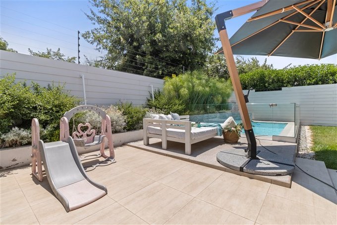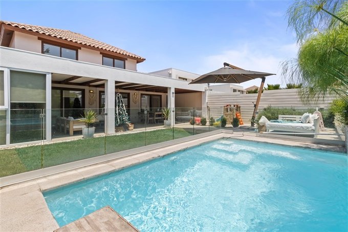 Piscina de muy buen tamaño con reja
