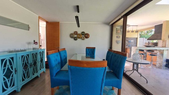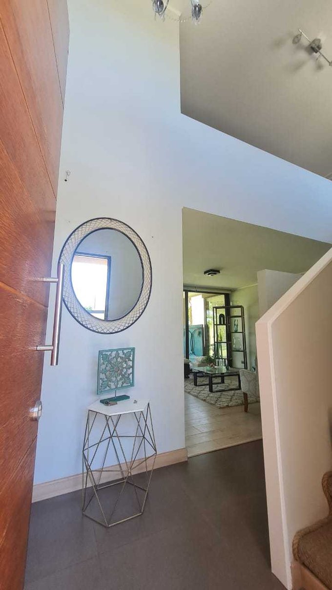 Casa en venta con opción a "venta amoblado" o con la opción de algunos muebles. Estilo moderno, ubicada en condominio en el sector norte de Chicureo rodeado de tranquilidad. Acceso directo a la autopista Los Libertadores, cercano a colegios y servicios, seguridad permanente, control de acceso. Condominio de excelente urbanización, amplias áreas verdes, luminarias exteriores, juegos infantiles y estacionamientos de visitas.