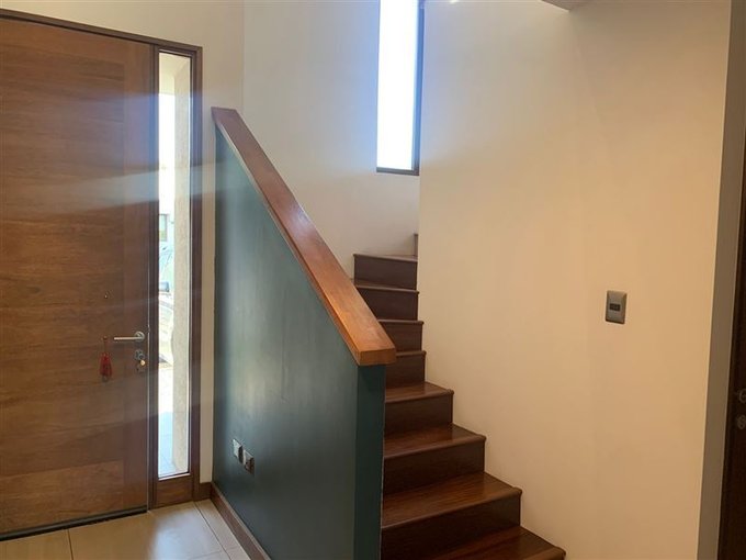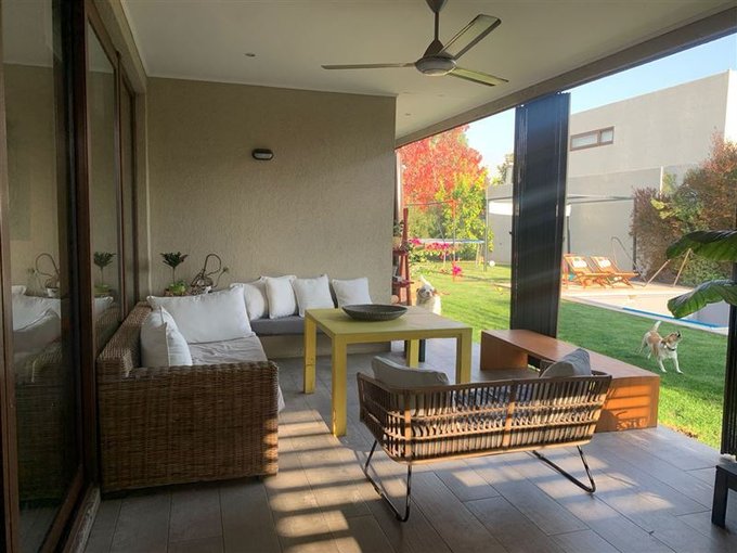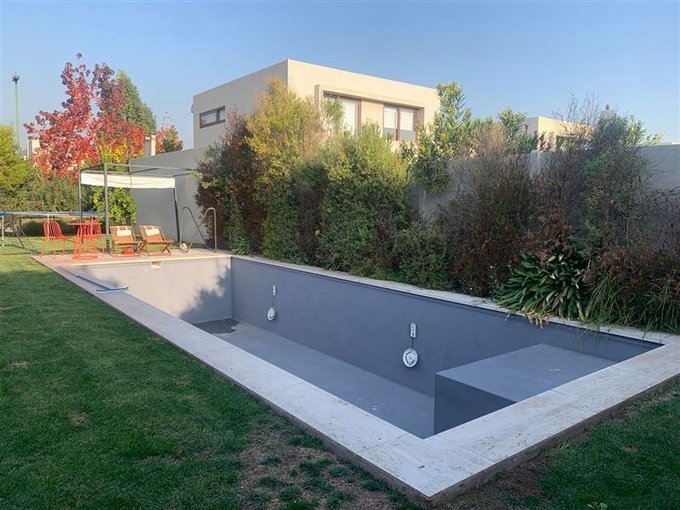 Living y comedor con salida a terraza, Jardín grande consolidado; piscina, cocina equipada, Gran logia techada. Baño de visitas. Escritorio. Dormitorio principal en suite, con walking closet