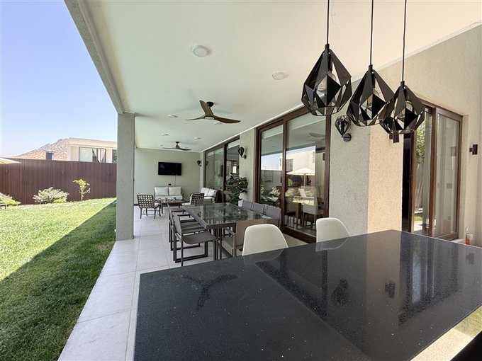 Casa en Venta con acceso a Laguna Artificial en sector Chicureo Oriente, por 15.990 U.F. Con 196 m2 de construcción y 466 m2 de terreno en José Rabat Laguna Piedra Roja. Esta propiedad de 4 baños y habitaciones también ofrece 4 estacionamientos y orientación Sur-Oriente, con gastos comunes de $150.000 pesos y contribuciones $490.000 por cuota.