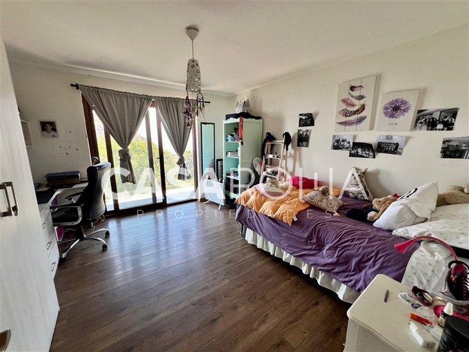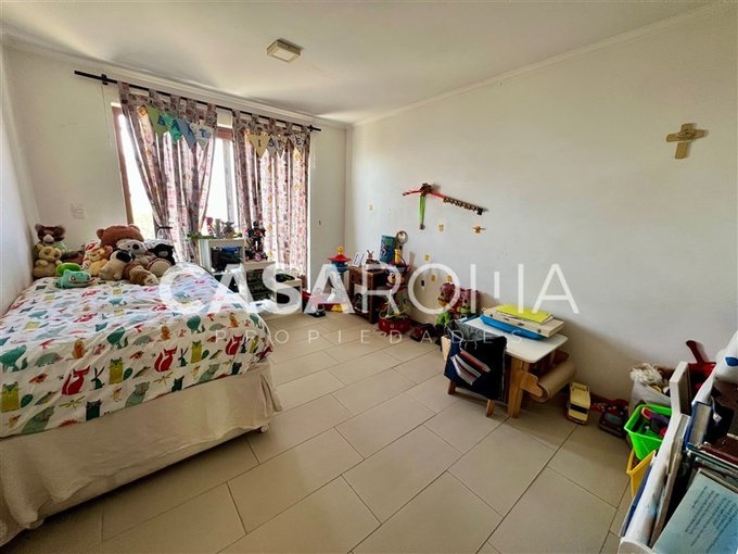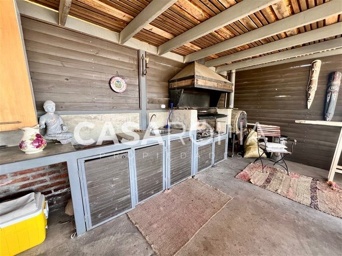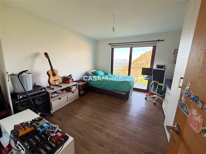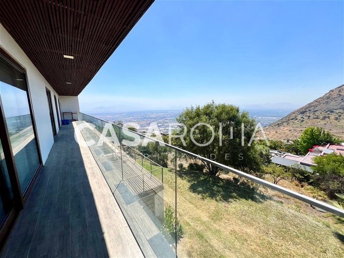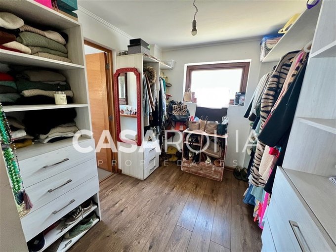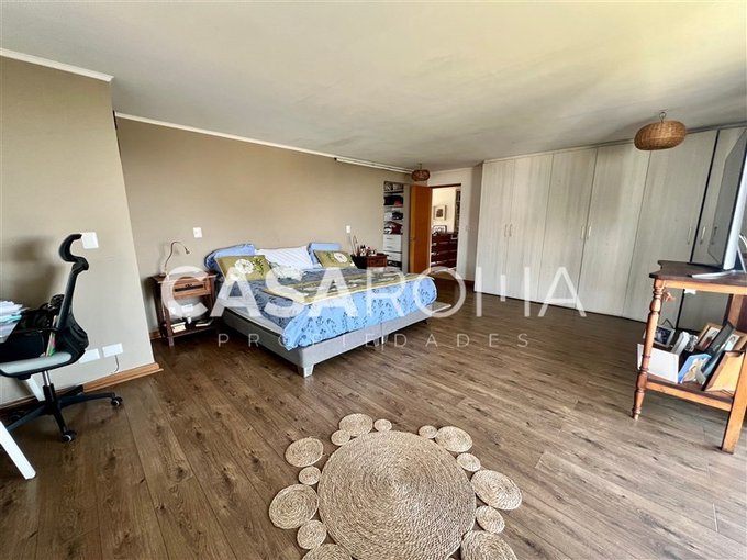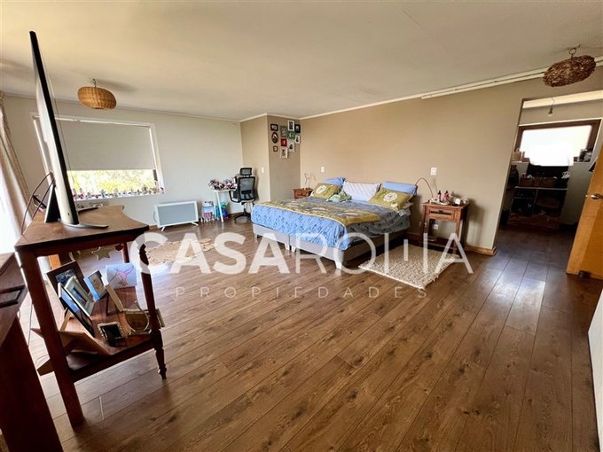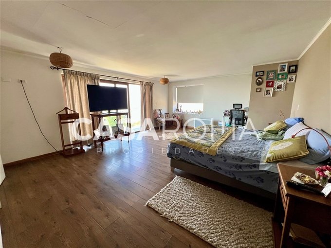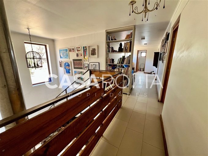 Terraza exterior, balcón por todo el lado de los dormitorios del segundo piso con cristal templado, piscina con terraza, quincho completo con fogón, parrilla y lavacopas independiente con terrazas. Lindo jardín formado con riego automático, bodega exterior, casa de muñecas, estacionamiento techado para 2 autos y espacio para abierto. Dos portones de acceso.
