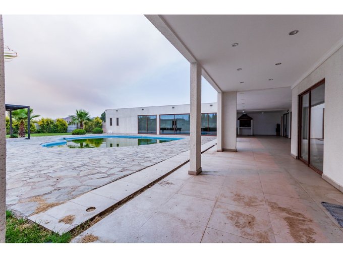 Piscina, terraza, cierre de parcelas en excelente estado, gran quincho techado con baño y duchas.