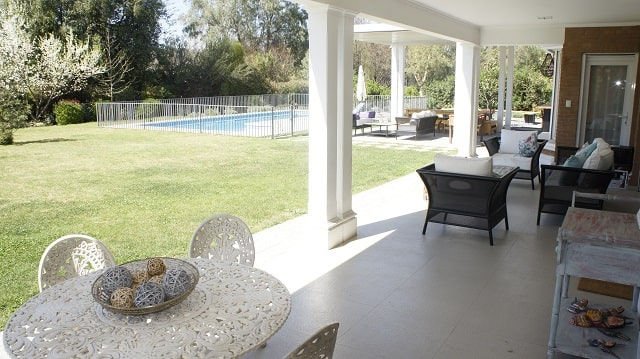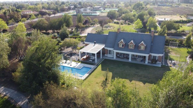 .: procasa :. Vende espectacular casa orilla cancha, ubicada en sector privilegiado de chicureo con alta plusvalía. Cuenta con 3970 m2 de terreno, consta con 6 habitaciones y 7 baños. Primer piso: amplio hall de acceso con piso de mármol y una maravillosa vista al jardín. Living y comedor independientes, ambos con salida a terraza y jardín. Amplia cocina completamente equipada con gran isla central y con comedor diario, loggia, pieza y baño de servicio. Cuenta con dos habitaciones cada una con su baño independiente y dormitorio principal en suite con walk in closet. Segundo piso: dos habitaciones con baños independientes con finas terminaciones y una hermosa sala de estar. Detalles interior: hall de entrada con piso de mármol, cocina con cubiertas de cuarzo y equipada completamente. Ventanas termopanel, iluminación led, 3 tipos de calefacción, losa radiante, radiadores y calefacción central. Cuenta además con una maravillosa vista a la cancha de golf. Exterior: jardín con riego automático, acogedor quincho con fogón con vista hacia la piscina, áreas verdes. Estacionamiento para 3 autos aproximadamente. El condominio cuenta con clubhouse/ restaurante, piscina, gimnasio diferentes disciplinas, canchas de golf, caballerizas, equitacion. Gran seguridad, circuito cerrado y guardias de seguridad. 3 accesos uno de ellos conecta directamente con piedra roja.