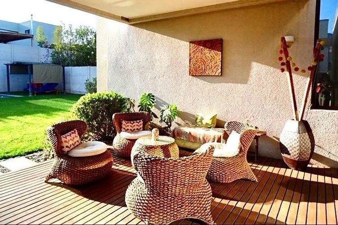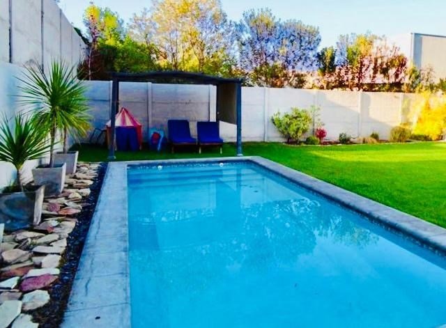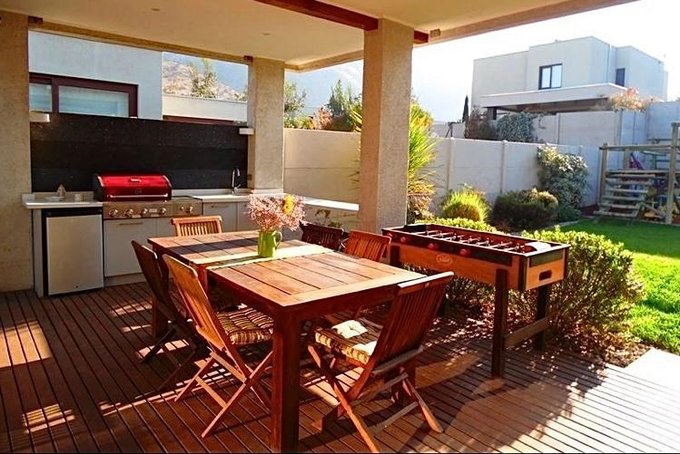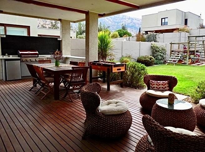 Jardín con riego automático, piscina, terraza techada con barbecue incorporado con parrilla a gas. Estacionamiento amplio para 2 autos. Excelente ubicación dentro del condominio.