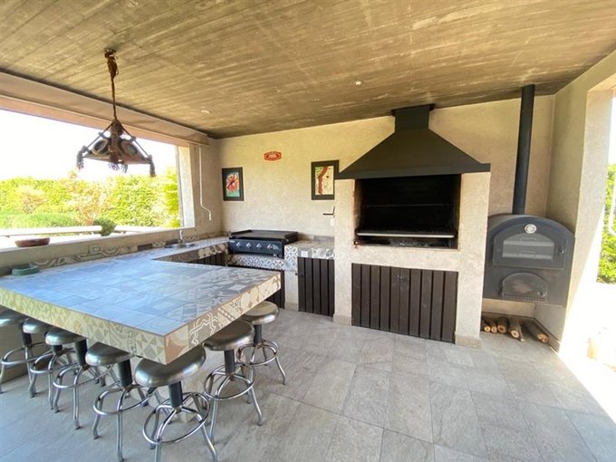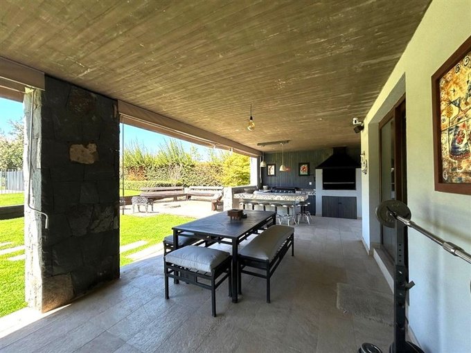 - Quincho equipado con mesón en obra, parrilla, horno de barro, plancha a gas, lava copas.