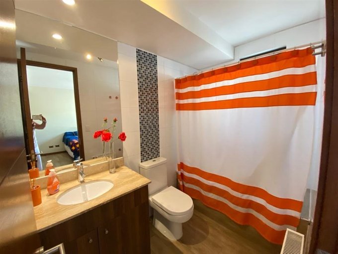 - Living comedor separados, pisos de madera de ingeniería, techo con hormigón a la vista con preciosa vista al jardín y terraza techada con Quincho equipado.