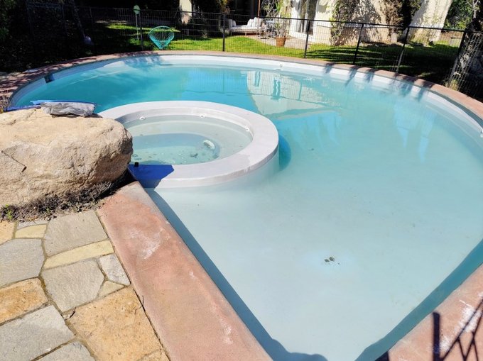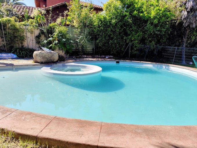 Piscina con jacuzzi incorporado (diseño con proporción aurea), con sus mantenciones al día. Un verdadero espacio de relax y disfrute.