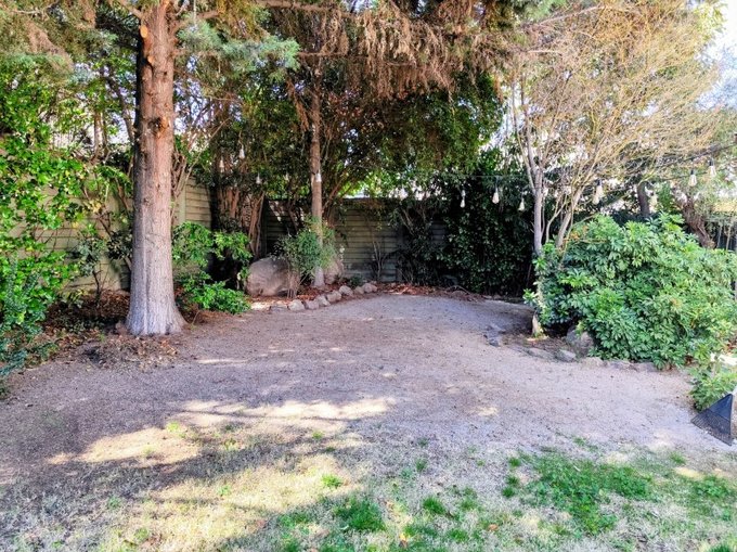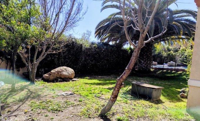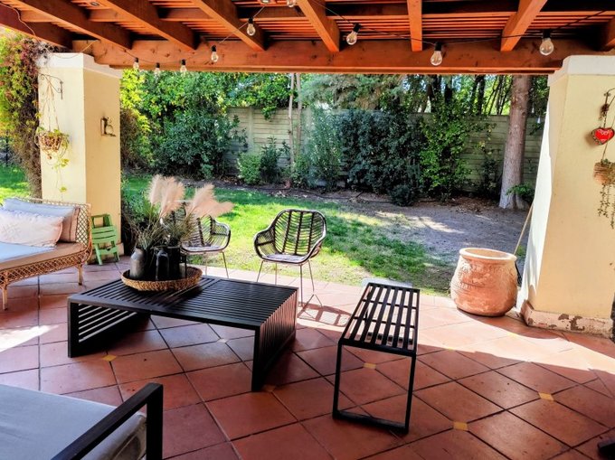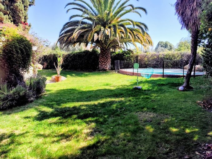 Gran patio diseñado por paisajista con hermosos árboles ornamentales, árboles productivos como Palto, Cerezo, Durazno, Mandarino entre otros.