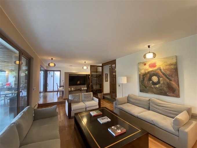 - Amplio living comedor separados con pisos de madera y amplia vista al jardín y terraza techada con quincho equipado.