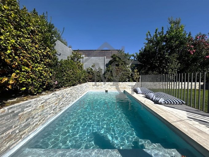 - Piscina con terraza de mármol y reja con seguridad.