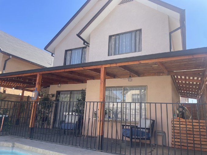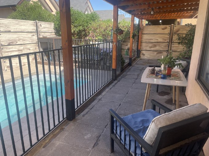 Ésta propiedad de 2 pisos posee un hermoso antejardín con estacionamiento para 4 vehículos, al interior 3 dormitorios con closets, 2 baños completos con tina y vanitorio (1 en suite) y otro más de visitas, amplio living - comedor, oficina - escritorio, cocina amoblada con espacio para comedor diario, encimera a gas, horno eléctrico y campana empotrados, despensa y logia. También cuenta con un gran patio semi techado, además de piscina y deck para compartir y disfrutar!