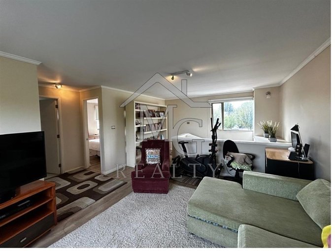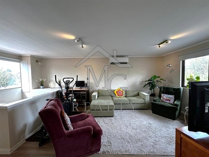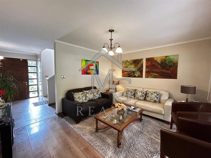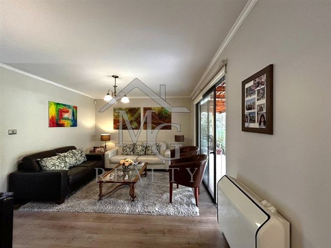 Amplia y luminosa sala de estar con piso flotante y aire acondicionado.