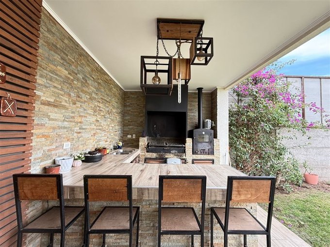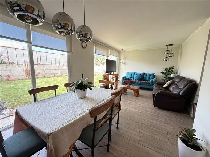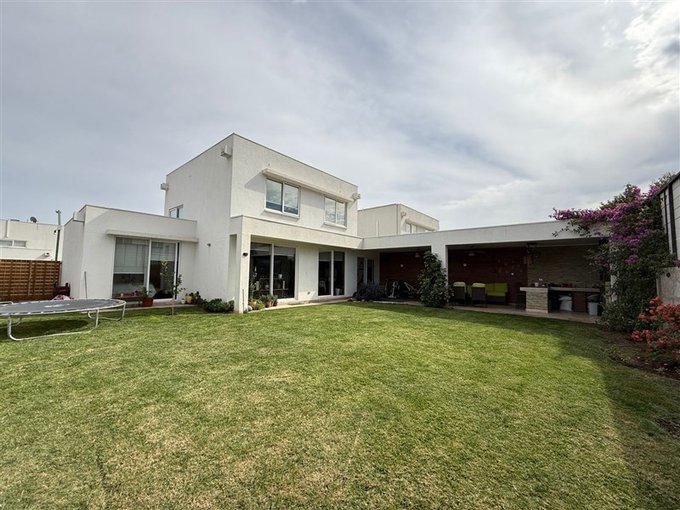 Linda casa estilo Moderno con terreno de 380 m2 totales y 138 m2 construidos muy bien mantenida, ubicada en condominio consolidado, con seguridad permanente, doble control de acceso, en el sector de Santa Filomena Chicureo Norte, a pasos de colegios Highlands, Cabo de Hornos, Strip Center, Gimnasios, Supermercados y con estupendo acceso a Autopista Los Libertadores y Ruta 5 Norte.