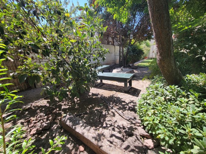 Jardin con riego riego y formado con arboles grandes