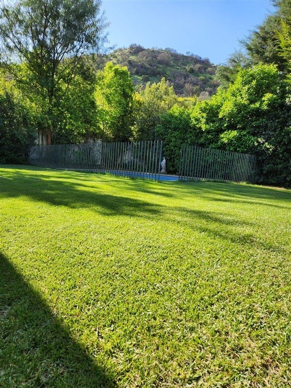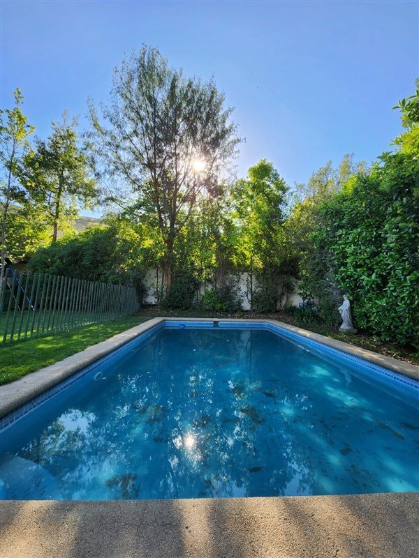 Cuenta con piscina, quincho, jardín formado con riego automático y huerto.