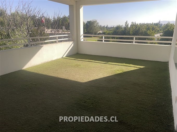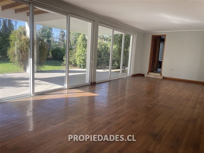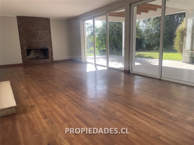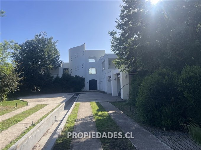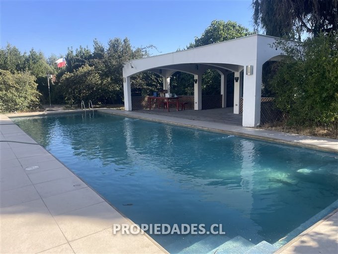 Jardín formado con gran piscina y quincho techado de 56 m2 con parrilla y horno de barro, cancha de pasto multiuso, sendero peatonal para recorrer cómodamente toda la propiedad.