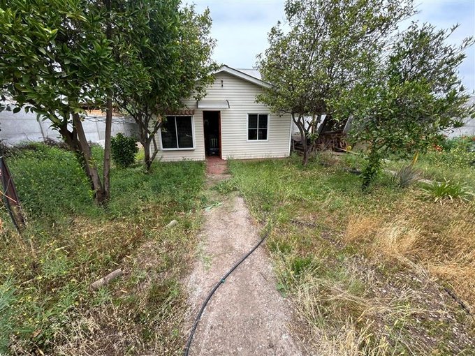 Propiedad con amplio terreno para estacionamiento y árboles frutales.