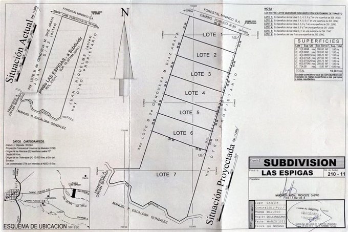 Se ofrecen a la venta 5 parcelas de 1 Ha. y uso forestal, con valores de $ 28.000.000 (5 de ellas ) y una sexta parcela en $ 30.000.000, esta última a borde del camino R-35. HAJ