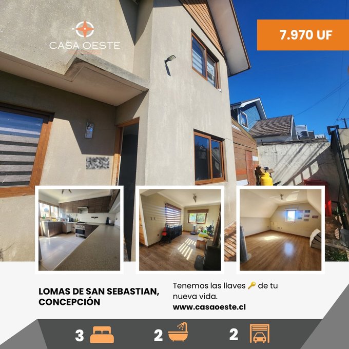 Estupenda casa de 3 niveles ubicada al exterior de exclusivo condominio en Lomas de San Sebastián, Concepción.