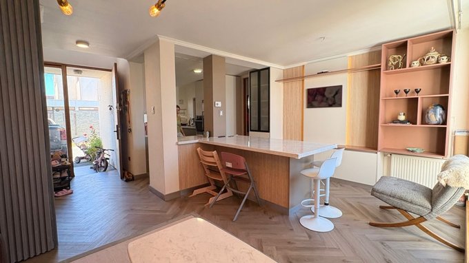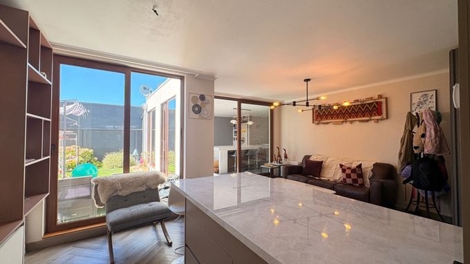 Vendo Casa de 200m2 en terreno de 276m2, 3 dormitorios, sala de estar, dormitorio de servicio, 4 baños, cocina de concepto abierto recién renovada, quincho cerrado, patio y bodega. Piso flotante en segundo piso, porcelanato en el quincho, gas natural, ventanas termopanel.