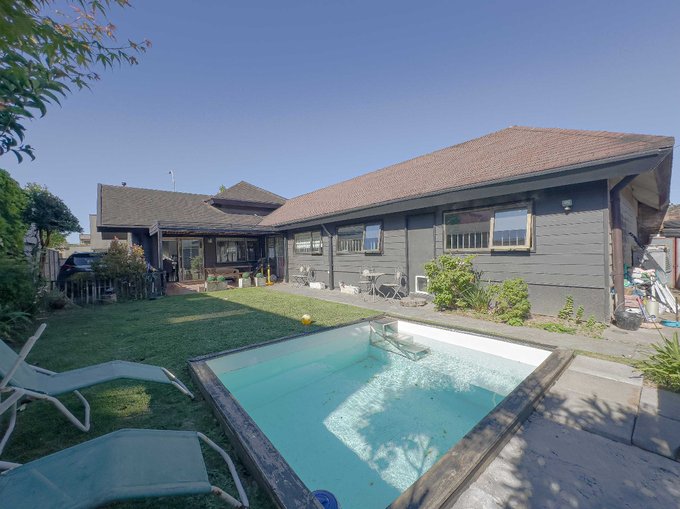 4 Dormitorios / 3 Baños / 2 Estacionamientos / 142 m2 construidos / 351 m2 de terreno / Jardín trasero, ante Jardín, terraza y piscina