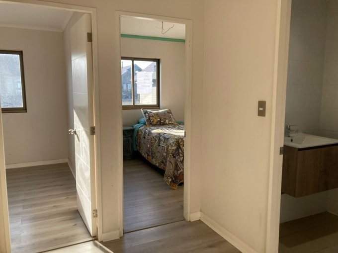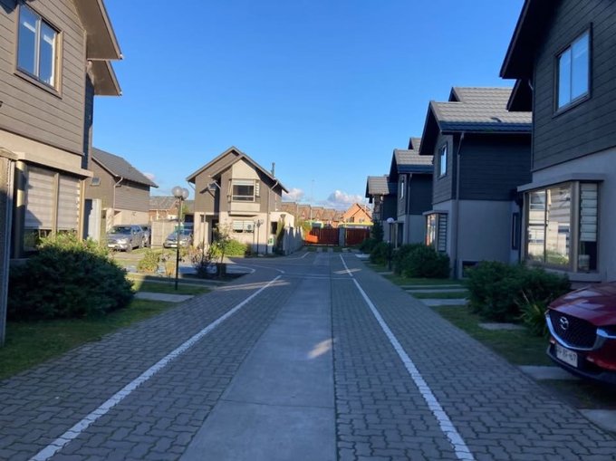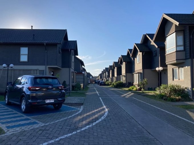 Vendo Casa 84m2 en propiedad de 208m2 en Condominio Elicura de Lomas de San Sebastián, 3 dormitorios, 3 baños, cocina independiente equipada, logia incorporada, antejardín cuidado, patio trasero con radier listo para quincho, estacionamiento para 2 vehículos con de ampliar para 4.