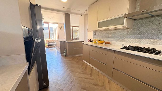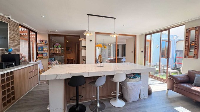 Cocina de concepto abierto recién renovada con slistone compacto
