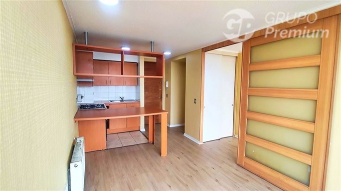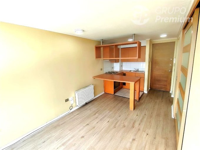 Cuenta con 1 dormitorio, 1 baño, cocina integrada y piso vinílico instalado recientemente, lo que entrega una base moderna y funcional. Al estar en un piso alto, el departamento ofrece un ambiente tranquilo y silencioso, aislado del ruido de la ciudad.