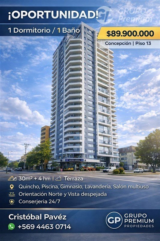 Desde su ventanal se disfruta una vista abierta hacia la ciudad y el centro de Concepción, a solo una cuadra del Parque Ecuador, ideal para quienes valoran áreas verdes, ciclovía y vida urbana activa.