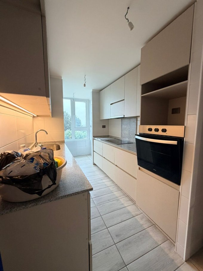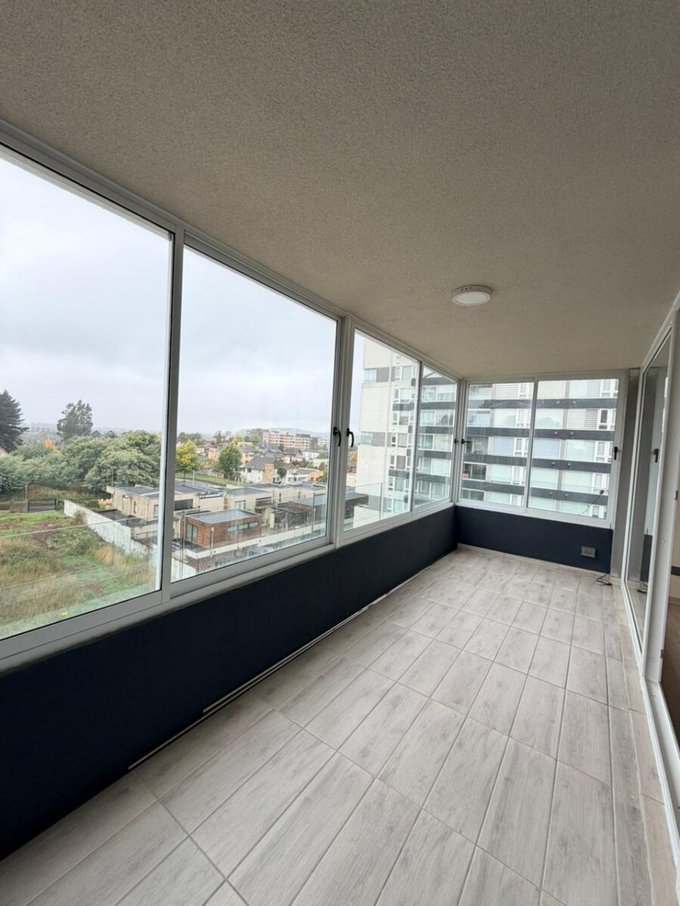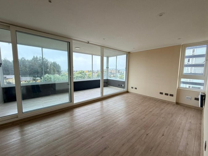 Living y comedor, amplia terraza principal cerrada con termopanel y con vista panorámica, cocina equipada con encimera vitrocerámica, horno eléctrico y campana, loggia. Orientación nor oriente.