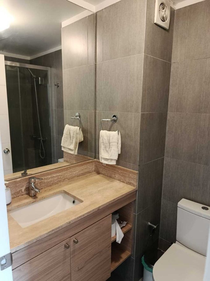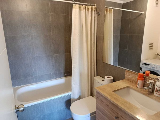 El departamento cuenta con cocina americana, living con salida a amplia terraza, 2 dormitorios, principal en suite y salida a terraza, 2 baños, el segundo con conexión a lavadora, ventanas termopanel, 1 estacionamiento.
