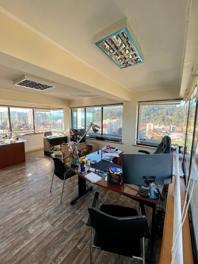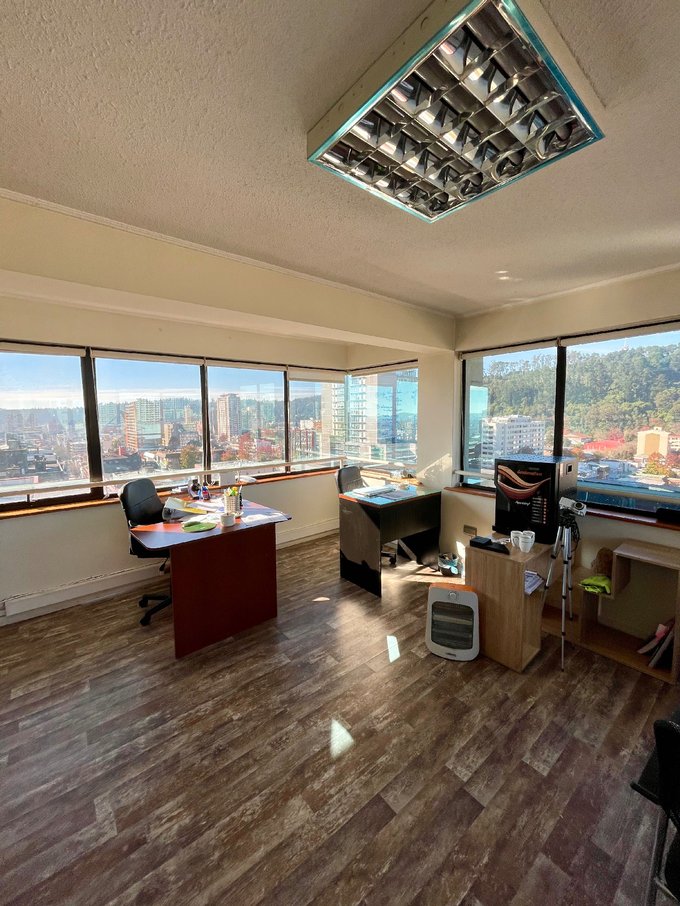 Espectacular oficina de 56 m2 en último piso de céntrico edificio a pasos de Plaza de Armas de Concepción centro.