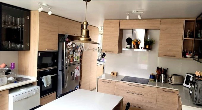Cuenta con 4 dormitorios y 3 baños, amplios espacios interiores y gran entrada de luz natural. La cocina es independiente y moderna, equipada con isla central, ideal para compartir y disfrutar en familia.