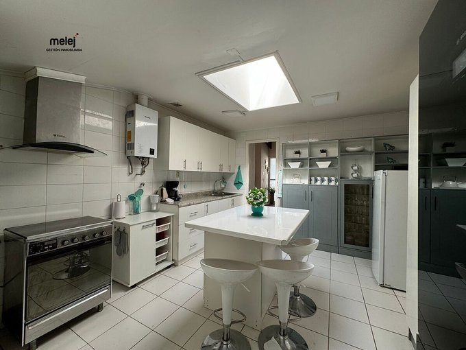 -Cocina equipada (encimera a gas, horno eléctrico, mesones de granito, comedor de diario)