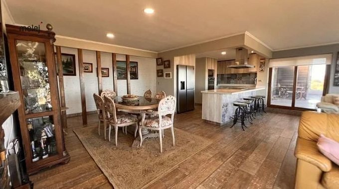 -Muros de piedra, madera decapada y decomural